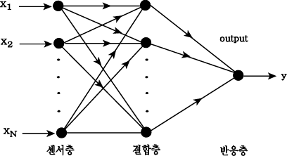 다음은 그가 제안한 단층 퍼셉트론의 구조이다.